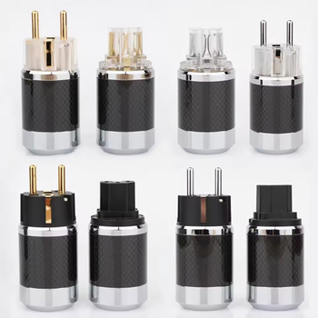 Par de plugues IEC forjados de fibra de carbono banhados a ródio da UE, plugues americanos, conectores IEC, adaptadores de expansão, plugues eu